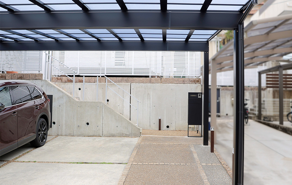 機能性だけでなく見た目の軽やかさにも配慮し、外観の印象を損なわない、上質なカーポート空間に仕上げました。