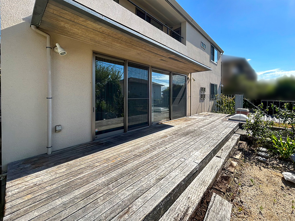 ウッドデッキを撤去して、新たに木樹脂デッキとガーデンルームを設置する計画を進めさせていただきました。