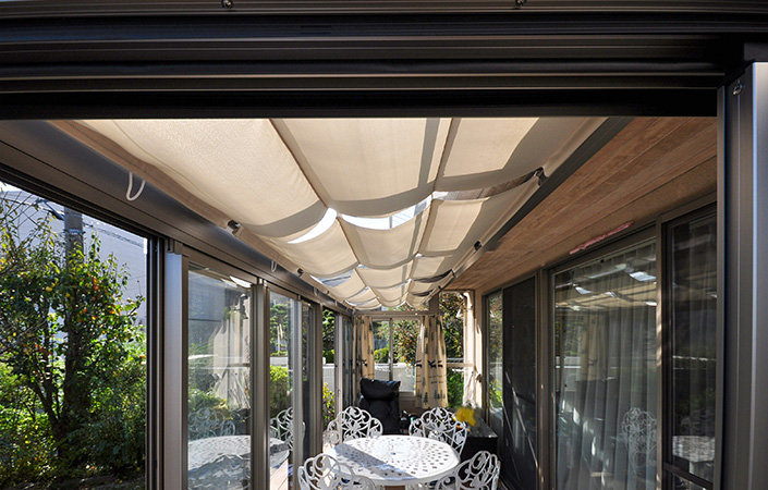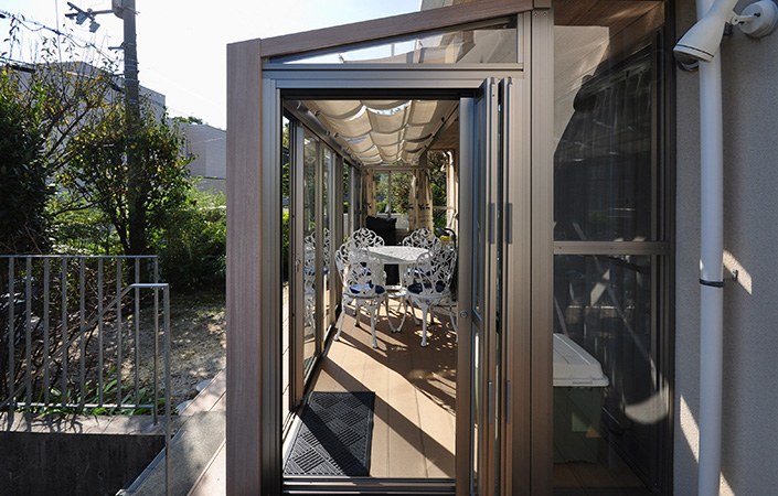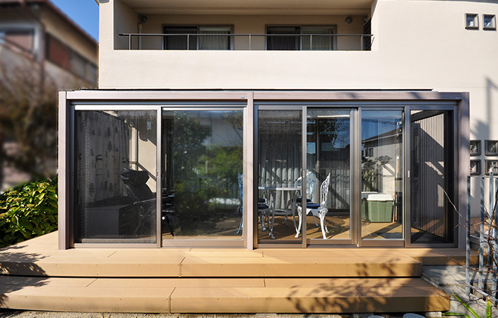 ガーデンルームを夏は日除け、冬は温室・サンルームとして利用されたいとお考えでしたので、使い勝手の良いLIXIL(リクシル)の「ガーデンルームGF」をご提案いたしました。